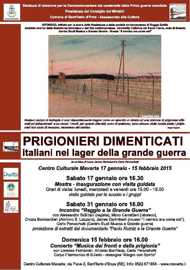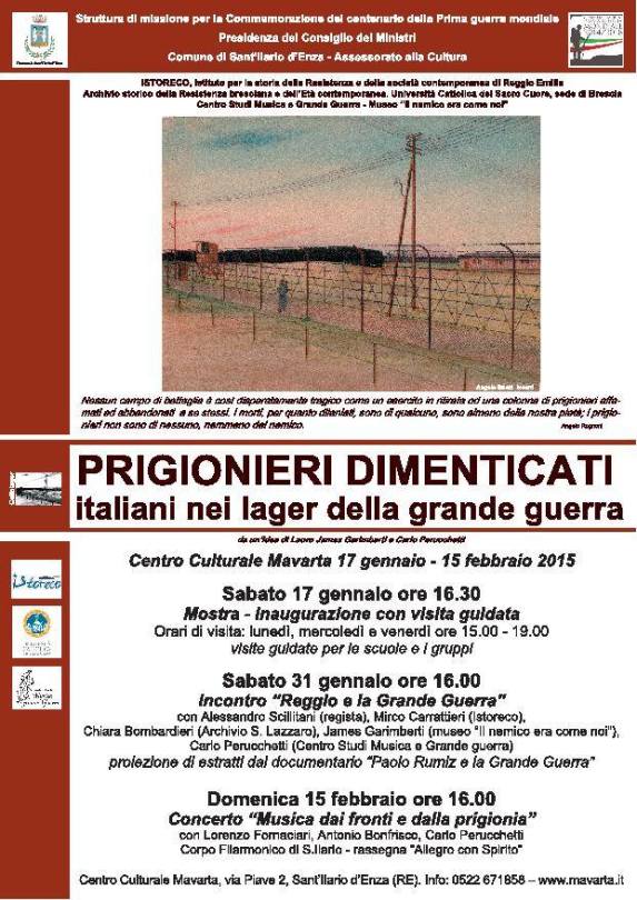 Locandina_mostra_S.Ilario_bassadef 8 gennaio 2015 621 × 878 MOSTRA Prigionieri dimenticati. Italiani nei Lager della Grande Guerra | fino al 15 febbraio Condividi: Fai clic per condividere su X (Si apre in una nuova finestra) X Fai clic per condividere su Facebook (Si apre in una nuova finestra) Facebook Mi piace Caricamento...