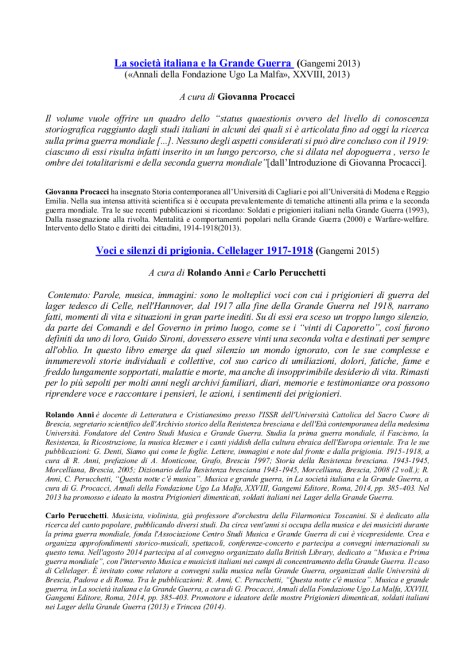 Fra i contributi interni al volume è presente il saggio “Questa notte c’è musica”. Musica e Grande Guerra di Rolando Anni e Carlo Perucchetti
